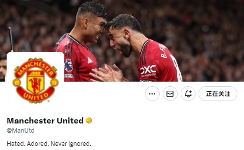 曼联官方的X账号也悄悄地发生了一些变化。最新的账号简介为:“被恨过,也被爱过;但从未被忽视过。”