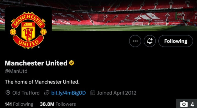 而一个月前,在职业联赛 杯第二轮输给格林斯比后不久,曼联就将其X账号简介更改为:“曼联之家。”该平台上的俱乐部社交媒体简介此前也是这样,自2022年3月以来一直如此。