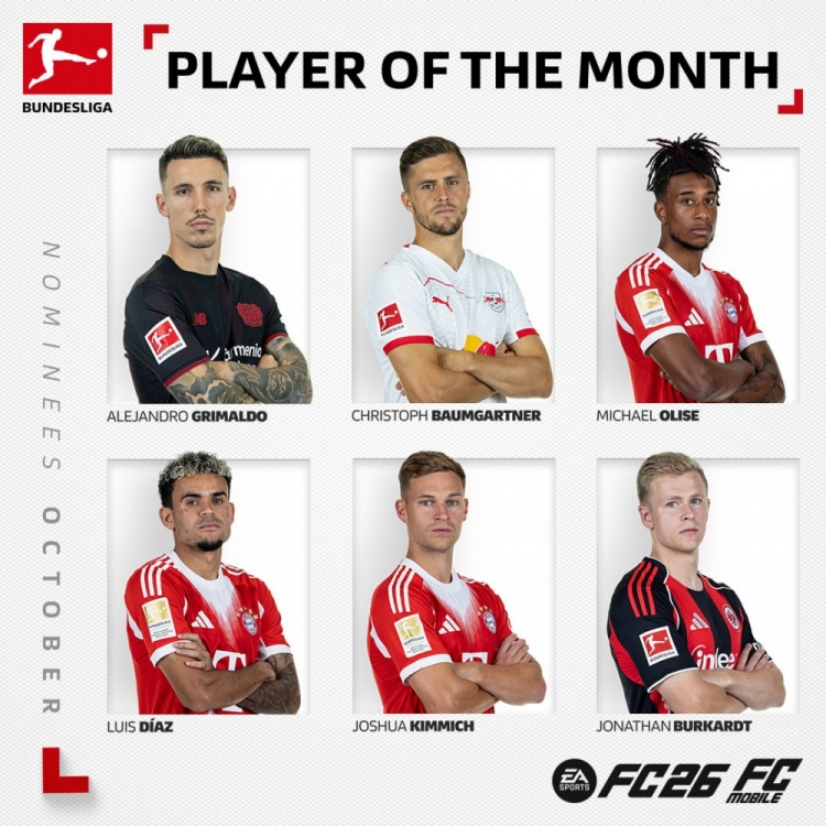 德甲10月最佳球员候选:拜仁3将奥利塞、迪亚斯、基米希在列