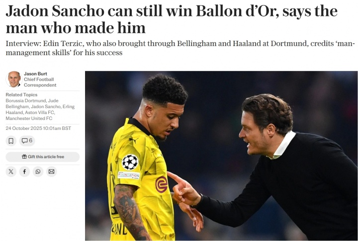 10月24日讯 英媒《每日电讯报》采访了前多特主帅泰尔齐奇,聊到了多名他曾共事过的高身价球员。其中对于桑乔,泰尔齐奇表示“他也还有赢得金球奖的机会”。